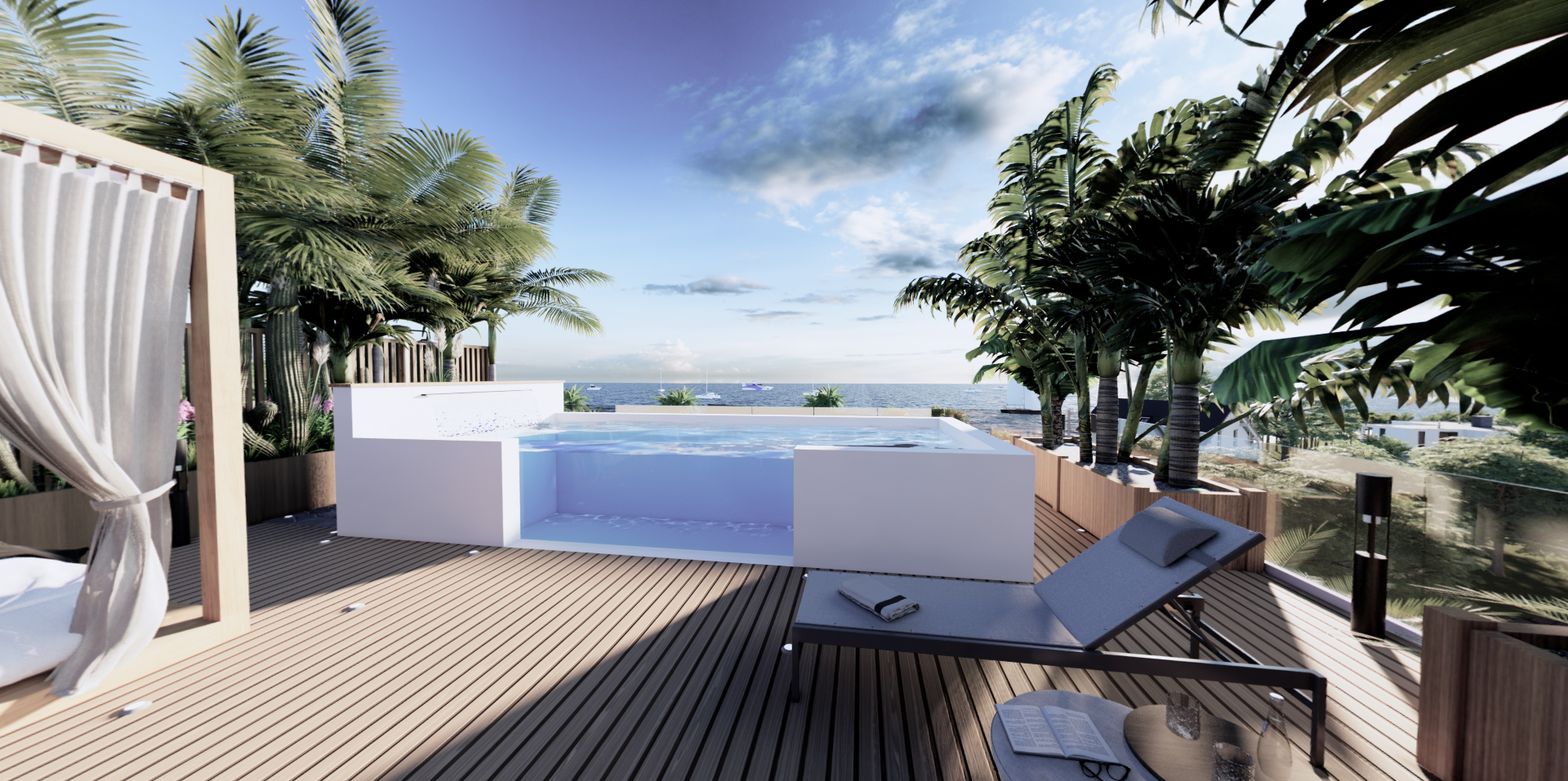 5 appartements uniques de 2 à 4 chambres, tous avec piscine individuelle et vue sur l'Océan.